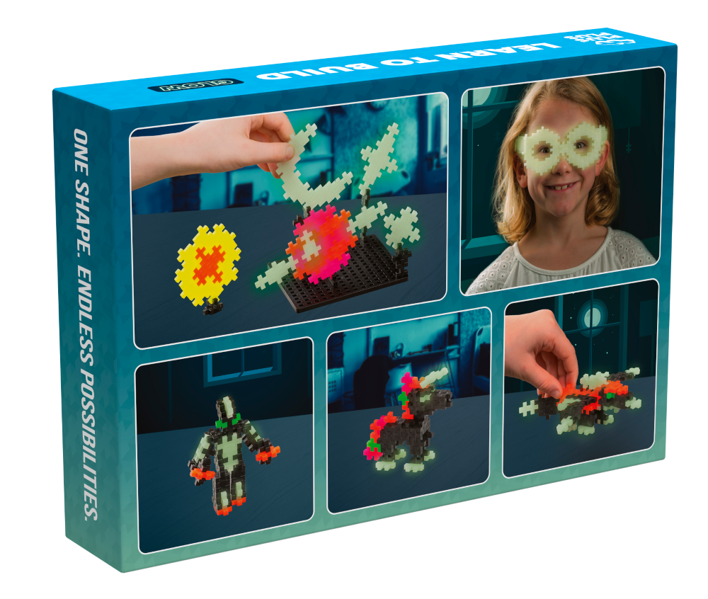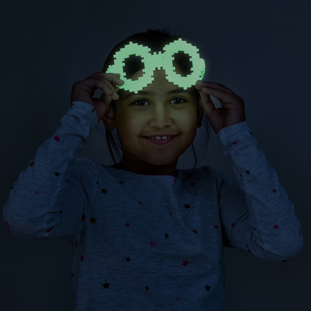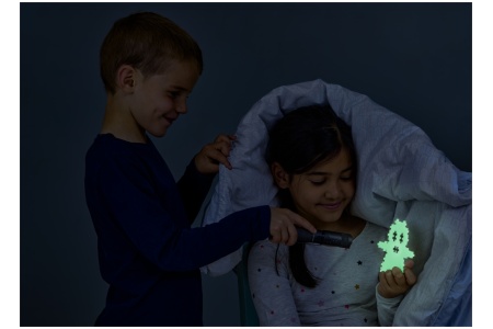 Išmok sukonstruoti tamsoje šviečiančius objektus. Šis rinkinys moko vaiką kaip pasidaryti paprastus veikėjus, tokius kaip vaiduokliai, vienaragis iš kosmoso ir pan.