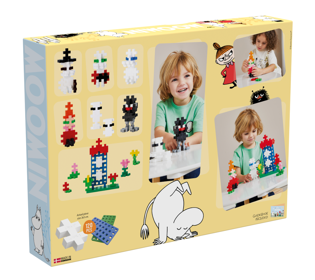 Įženk į nuostabų Muminukų slėnio pasaulį su Plus Plus DIDELĖMIS detalėmis! Su šiuo kūrybiniu rinkiniu vaikai gali statyti savo mėgstamus personažus ir scenas iš mylimų Muminukų istorijų — įskaitant Muminuką, Muminuko mamą, Muminuko tėtį Mažąją Miu, Smirdžių ir Hatifnatus. Taip pat galima pastatyti Muminuko namą ir papuošti jį spalvingomis gėlėmis naudojant pagrinduką.