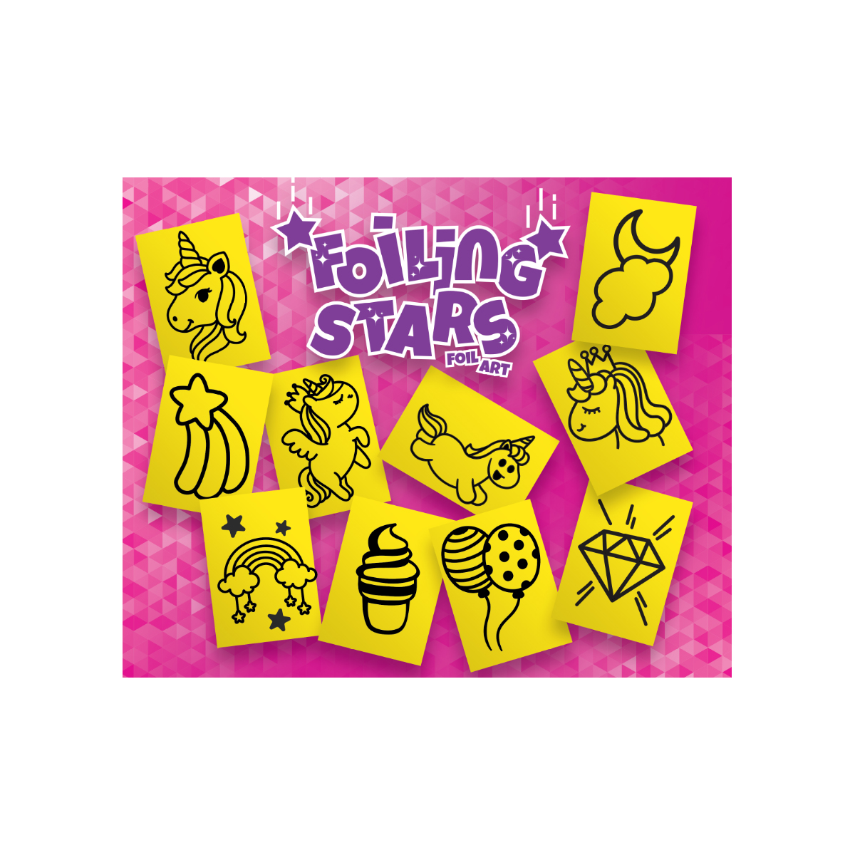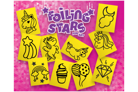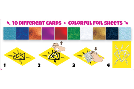 Naudodami rinkinyje esantį pagaliuką, nuimkite lipduką, uždėkite foliją ir švelniai prispauskite. Folijos blizgi spalva persikels ant paveikslėlio.