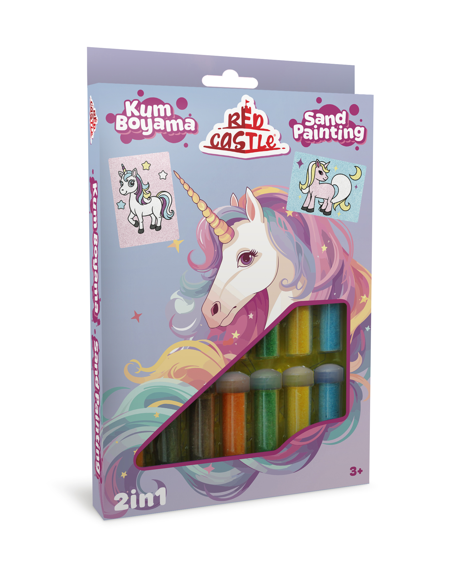 - 15 indelių su skirtingų spalvų smėliu.