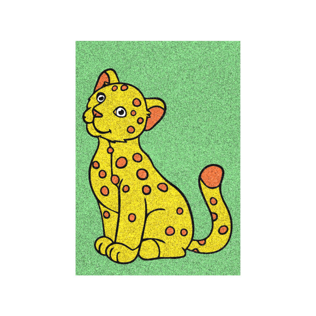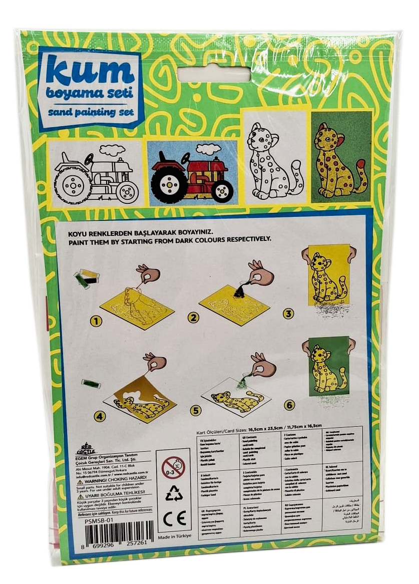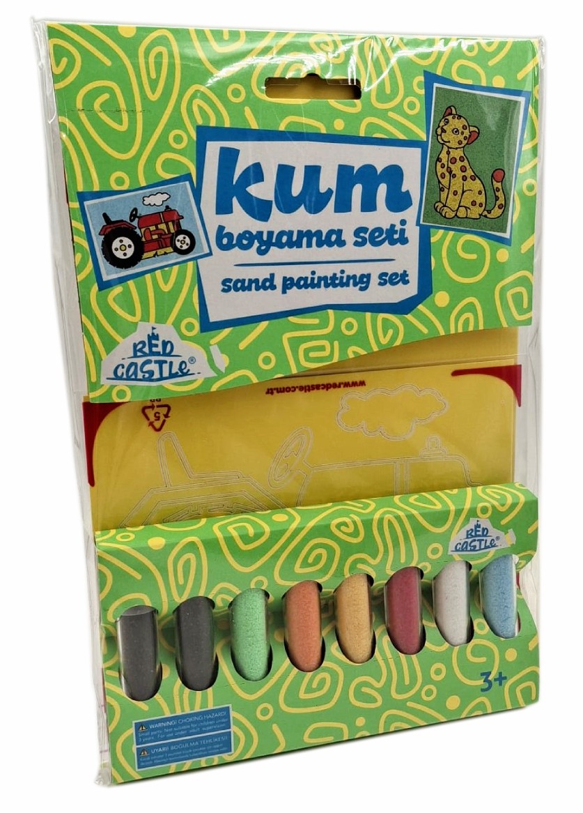 - 10 indelių su skirtingų spalvų smėliu.