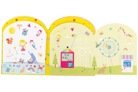 Svajojate apie lipdukus, kuriuos galėtumėte naudoti vėl ir vėl? Šiame kūrybiniame rinkinyje rasite ne tik žaismingus daugkartinius lipdukus, bet ir kūrybingumą sužadinančius išsilankstančius fonus – scenas! Pasitelkite nuotaikingus lipdukus ir kurkite savo pasakojimus. Lipdukus galite patogiai laikyti galiniuose knygelės puslapiuose – čia rasite visų rinkinio lipdukų kontūrus. Galima mokytis dėlioti pagal formas.