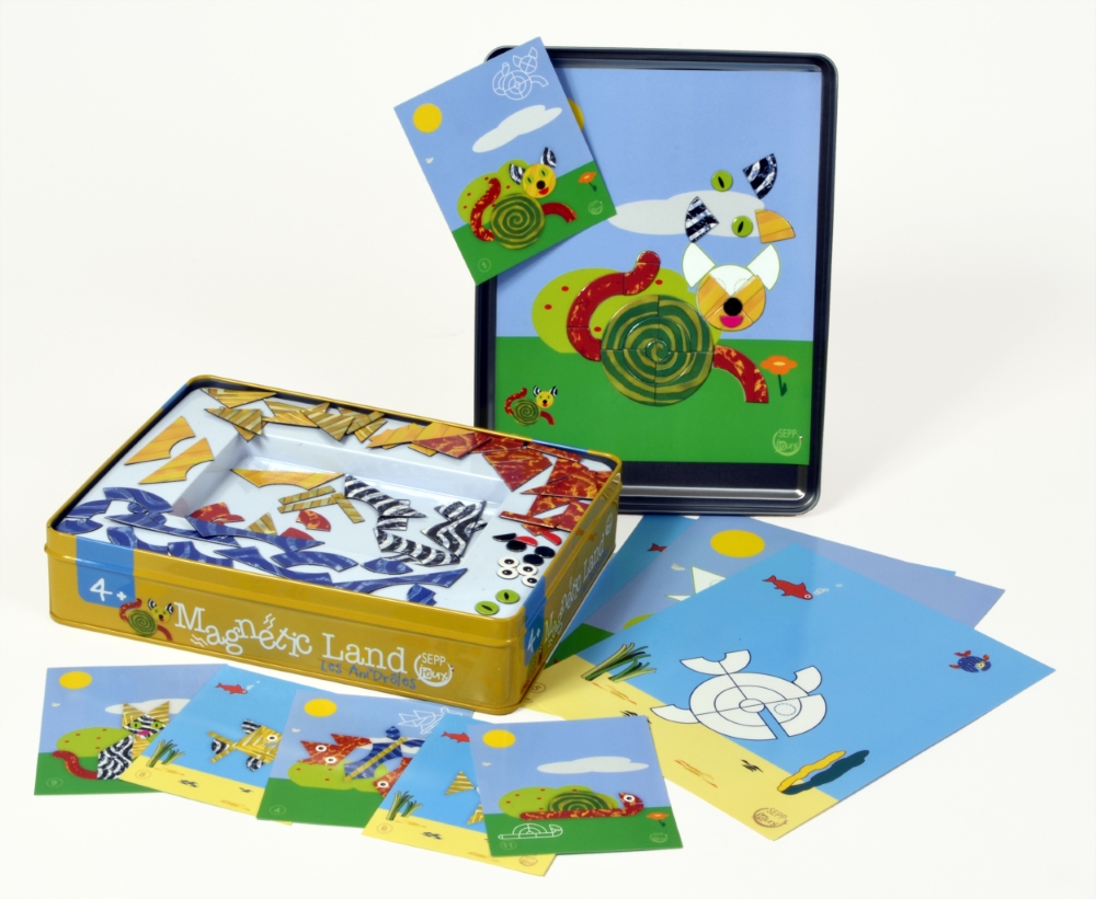 - 4 iš abiejų pusių spalvoti paveikslai (iš viso 8 paveikslai) dydis 210×170 mm. Iš jų: 3 neutralūs paveikslai ir 5 su paruoštais dėliojimui pavyzdžiais.