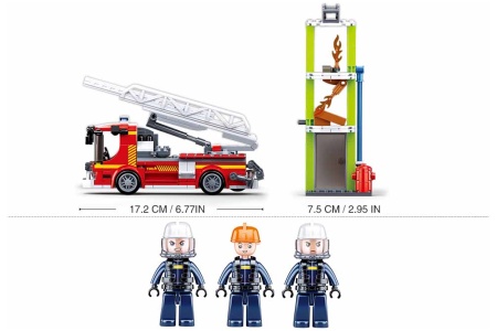 Mašinos ilgis 17.2 cm. Pastato ilgis 7.5 cm.
