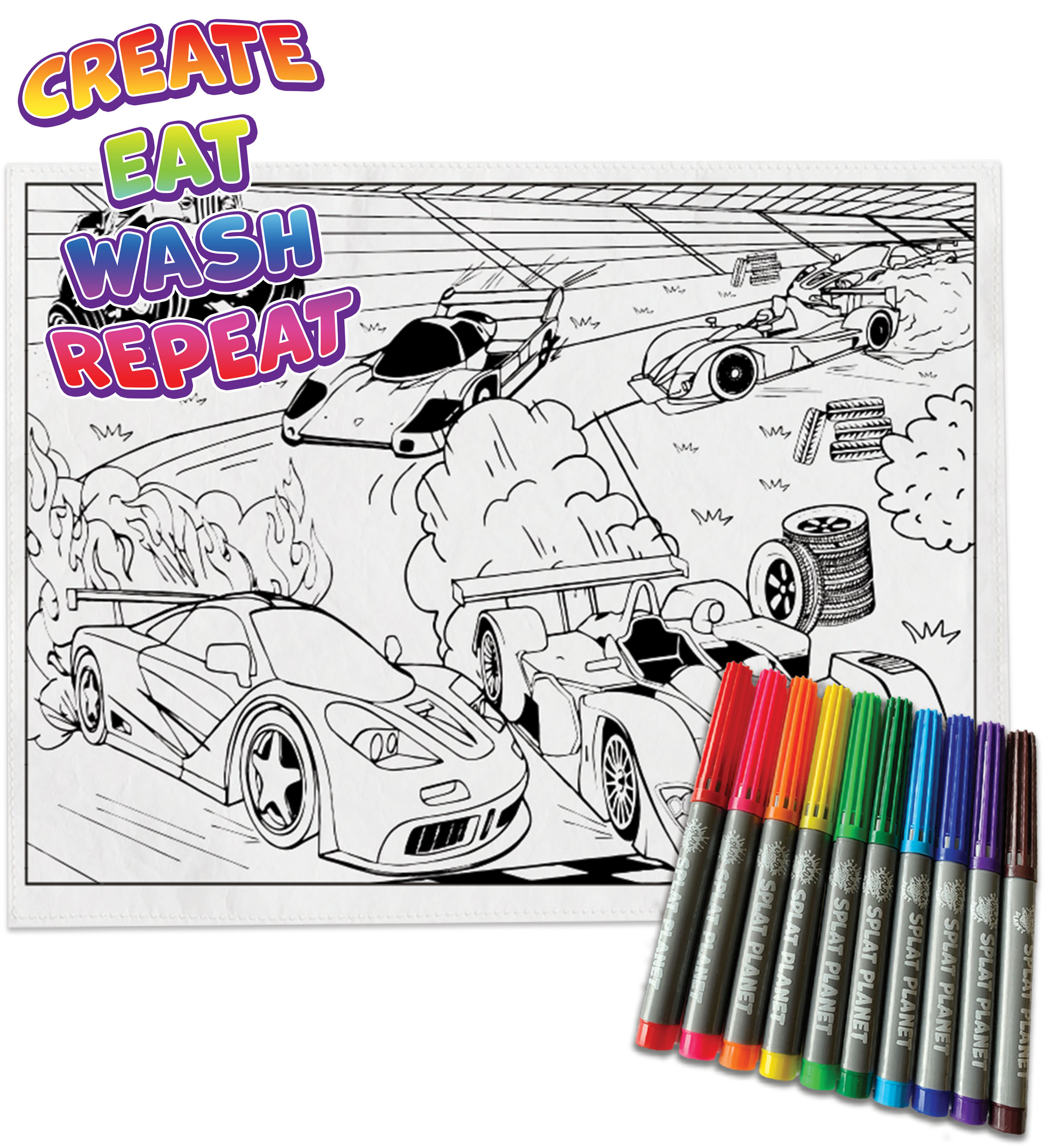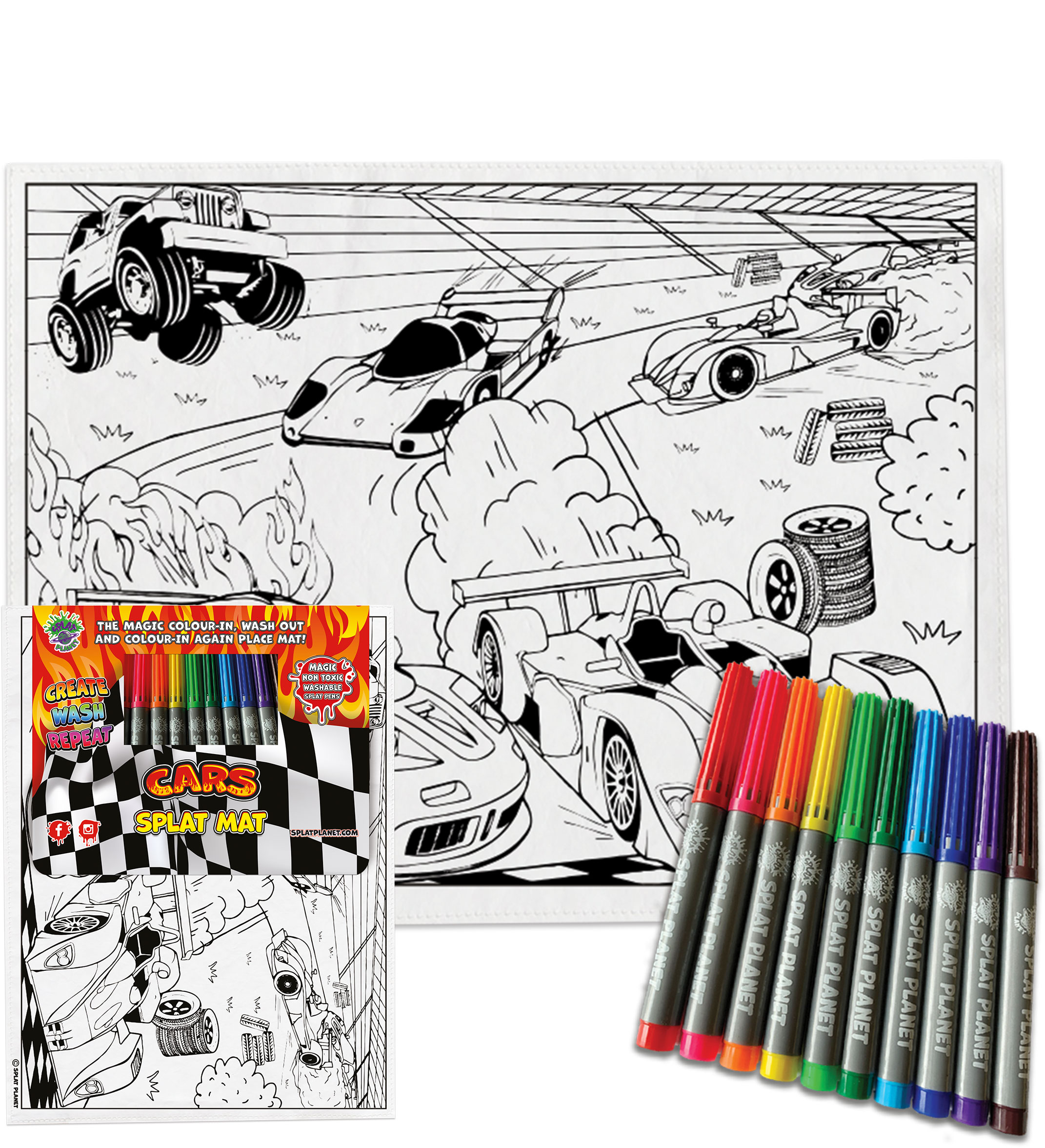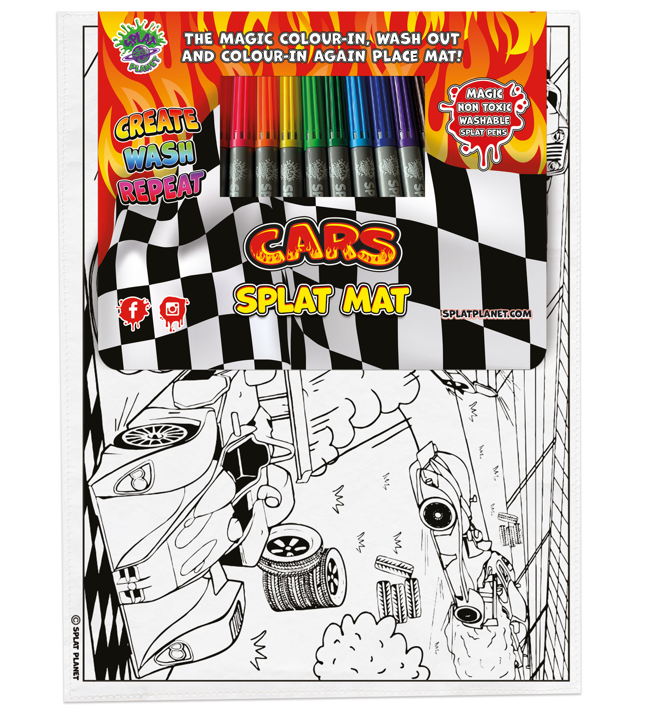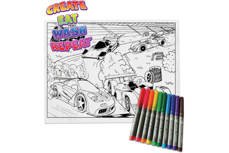 Naudojimas: nuspalvinti kilimėlį rinkinyje esančiais flomasteriais, naudoti, išskalbti ir vėl spalvinti. Flomasteriai išskalbiami, netoksiški.