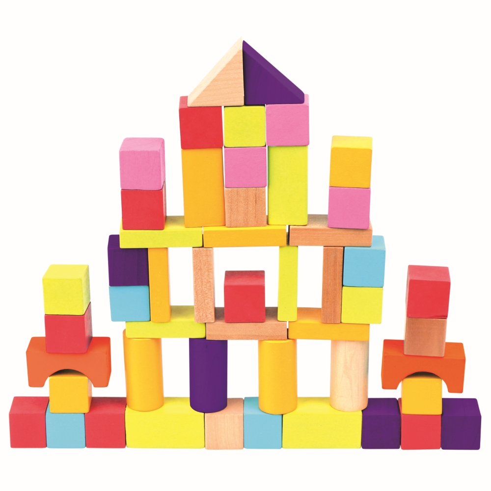 - Skirtingos formos: stačiakampiai, kvadratai, cilindrai žaidžiant vaikas mokosi atskirti geometrines figūras, pažinti spalvas