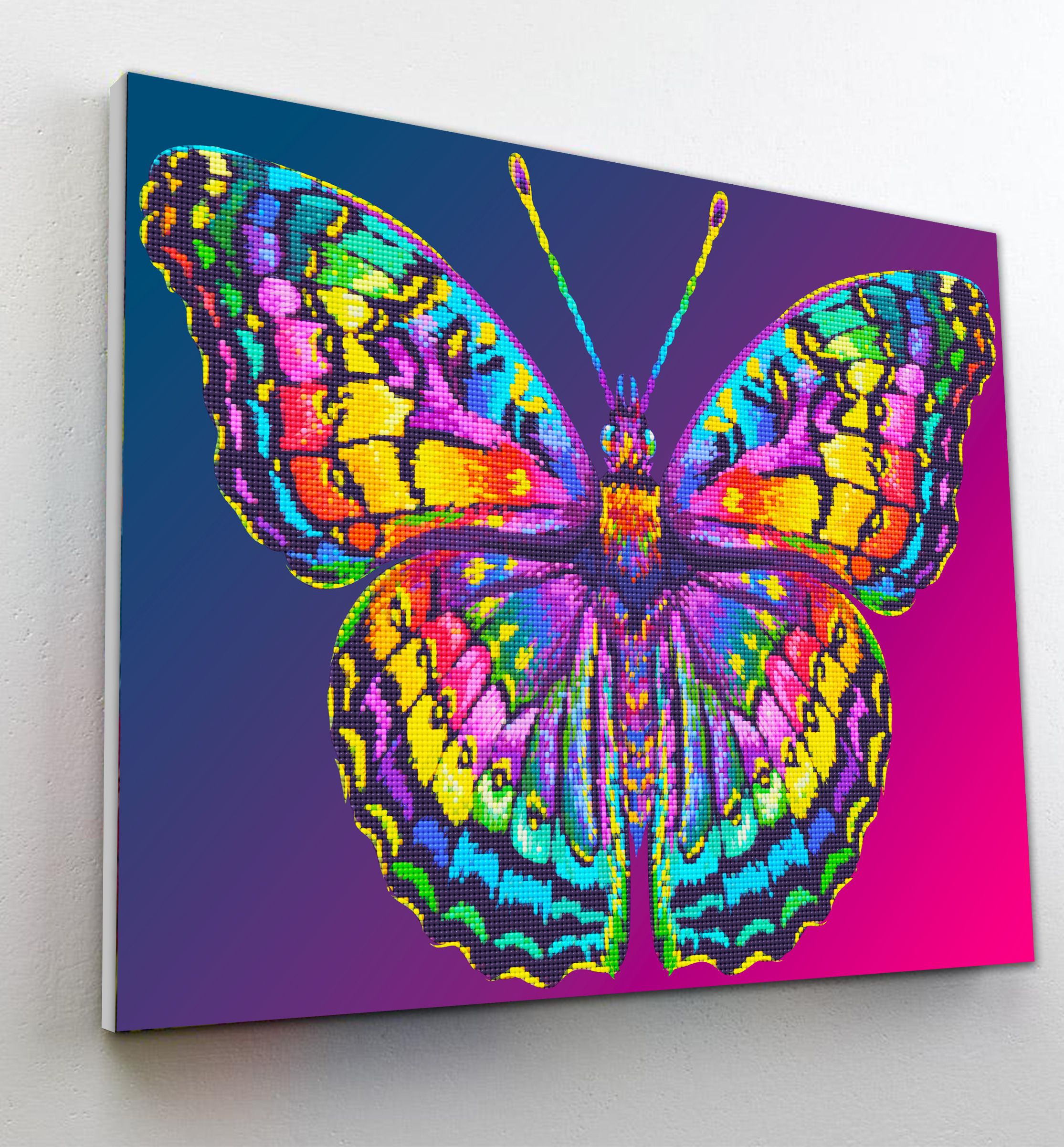 Dėliojame ant drobės, kurią iškart galima pakabinti ant sienos.
