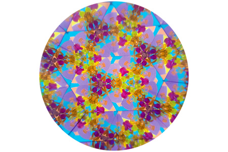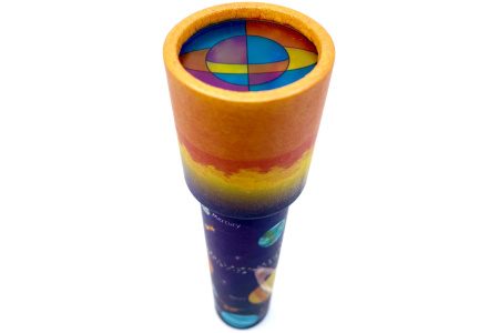 Žavus kartoninis sukamas kaleidoskopas dekoruotas spalvingais raštais. Pagamintas iš ekologiškų medžiagų.