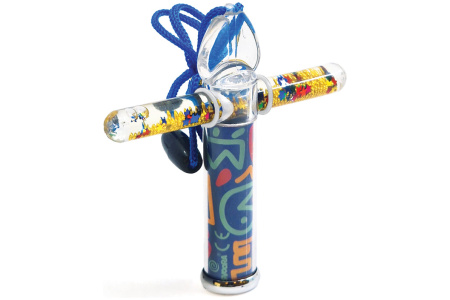 Mini kaleidoskopas su tūbele, pripildyta specialiu skysčiu, spalvotu smėliu ir blizgučiais, kurie sukasi ir kuria įspūdingus raštus žvelgiant per kaleidoskopą. Patogus dydis ir reguliuojamas dirželis – idealiai tinka kelionei!