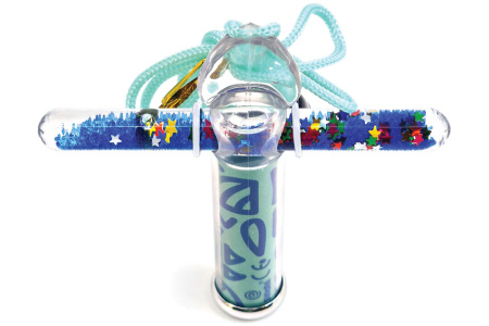 Mini kaleidoskopas su tūbele, pripildyta specialiu skysčiu, spalvotu smėliu ir blizgučiais, kurie sukasi ir kuria įspūdingus raštus žvelgiant per kaleidoskopą. Patogus dydis ir reguliuojamas dirželis – idealiai tinka kelionei!