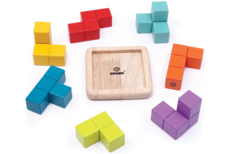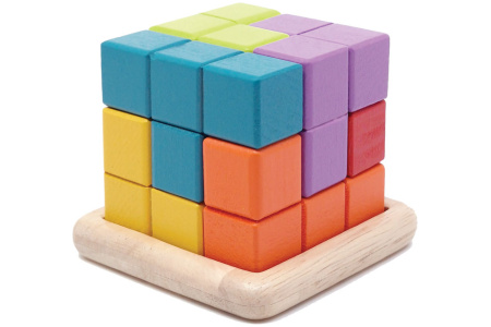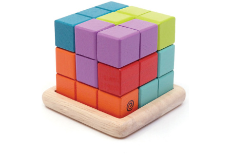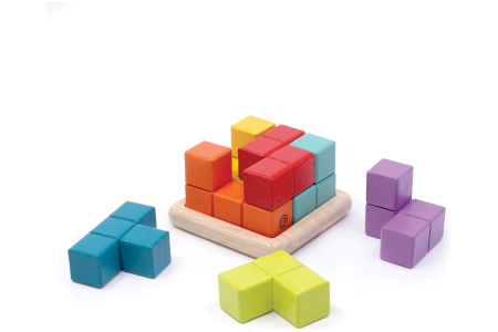 Įtraukianti 3D dėlionė! Sudėkite septynias spalvingas dalis į tobulą kubą ir padėkite savo kūrinį ant elegantiško medinio pagrindo.