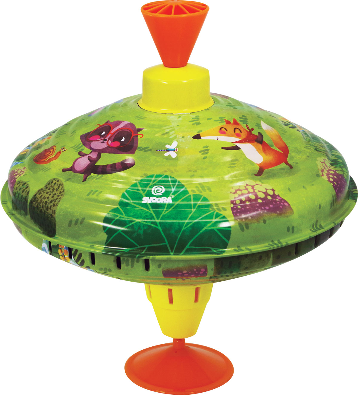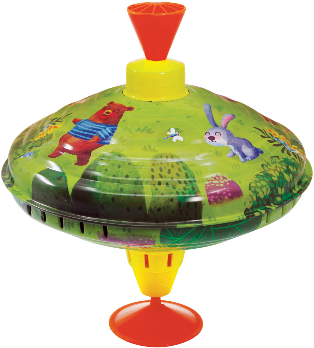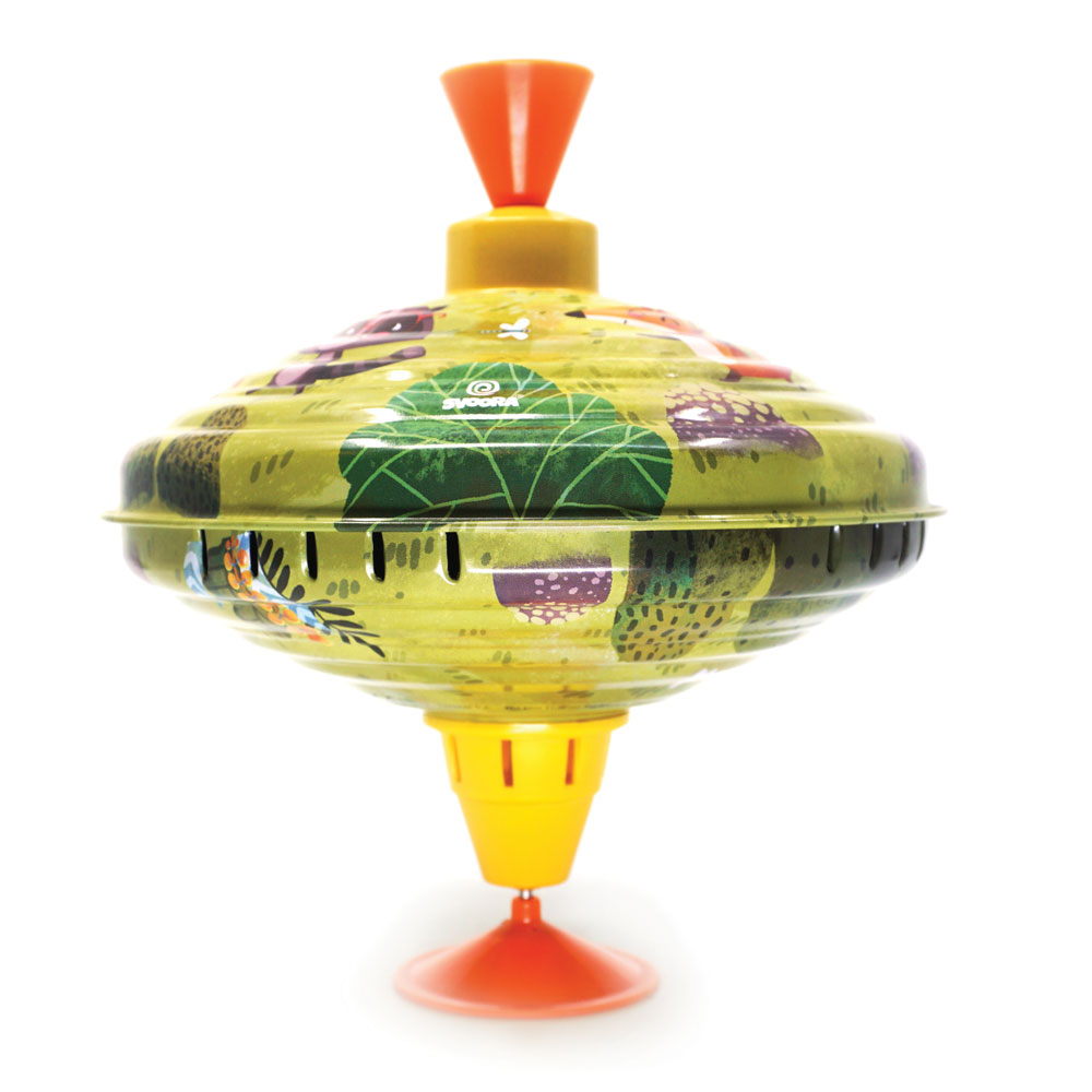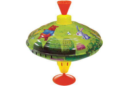Ypač žavus klasikinis skardinis vilkelis. Pakartotinai traukite rankenėlę aukštyn ir stumkite žemyn, kad vilkelis imtų suktis ir skleisti garsą.