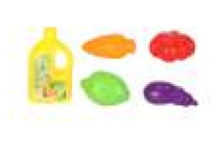 - Plastikiniai priedai (indų ploviklis, pomidoras, laimas, baklažanas, morka)
